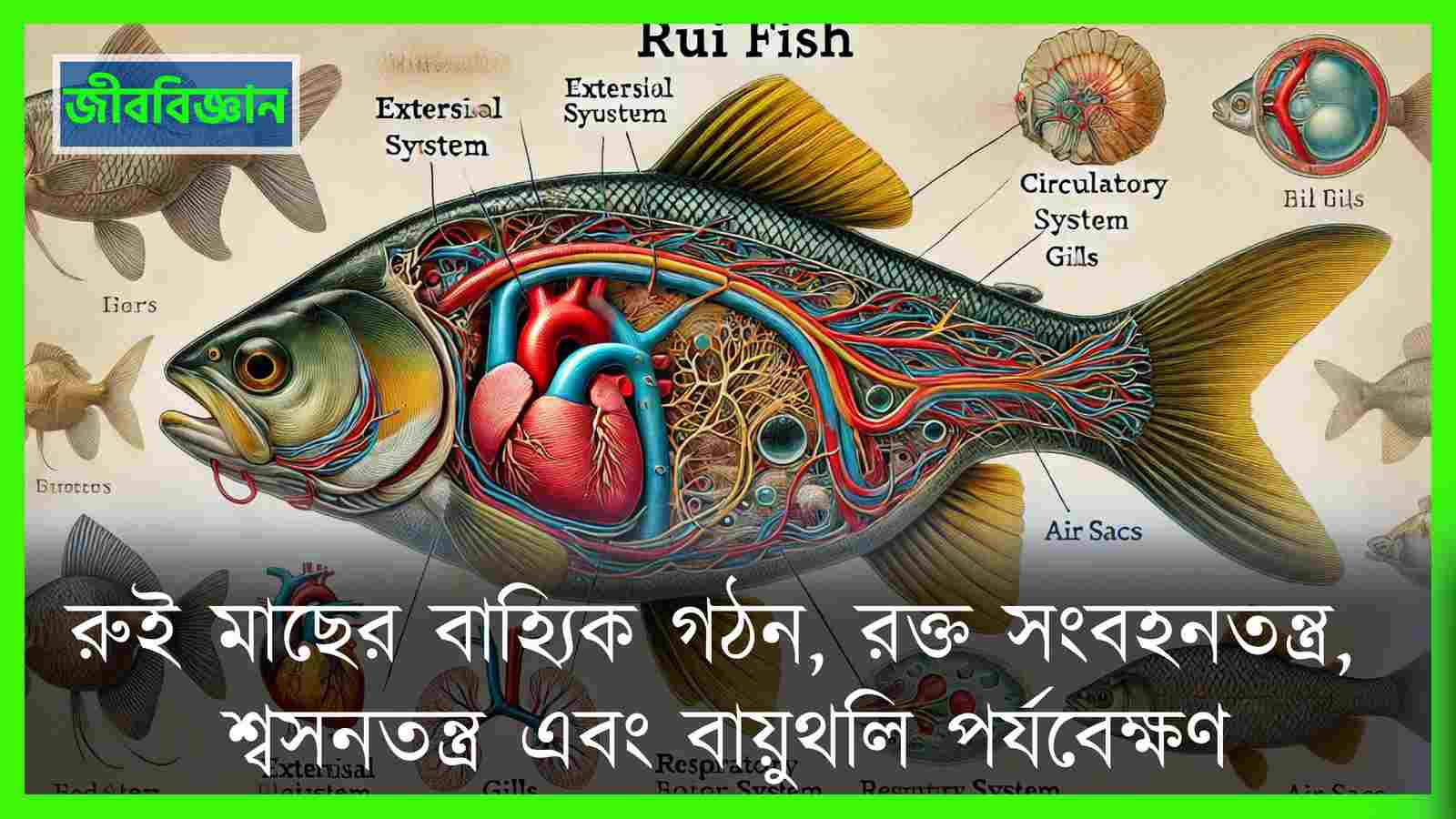 রুই মাছের বাহ্যিক গঠন, রক্ত সংবহনতন্ত্র, শাসনতন্ত্র এবং বায়..