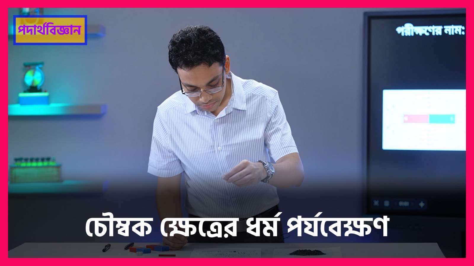 একটি দন্ড চুম্বক ব্যবহার করে বিভিন্ন উপাদানের চৌম্বক ক্ষেত�..