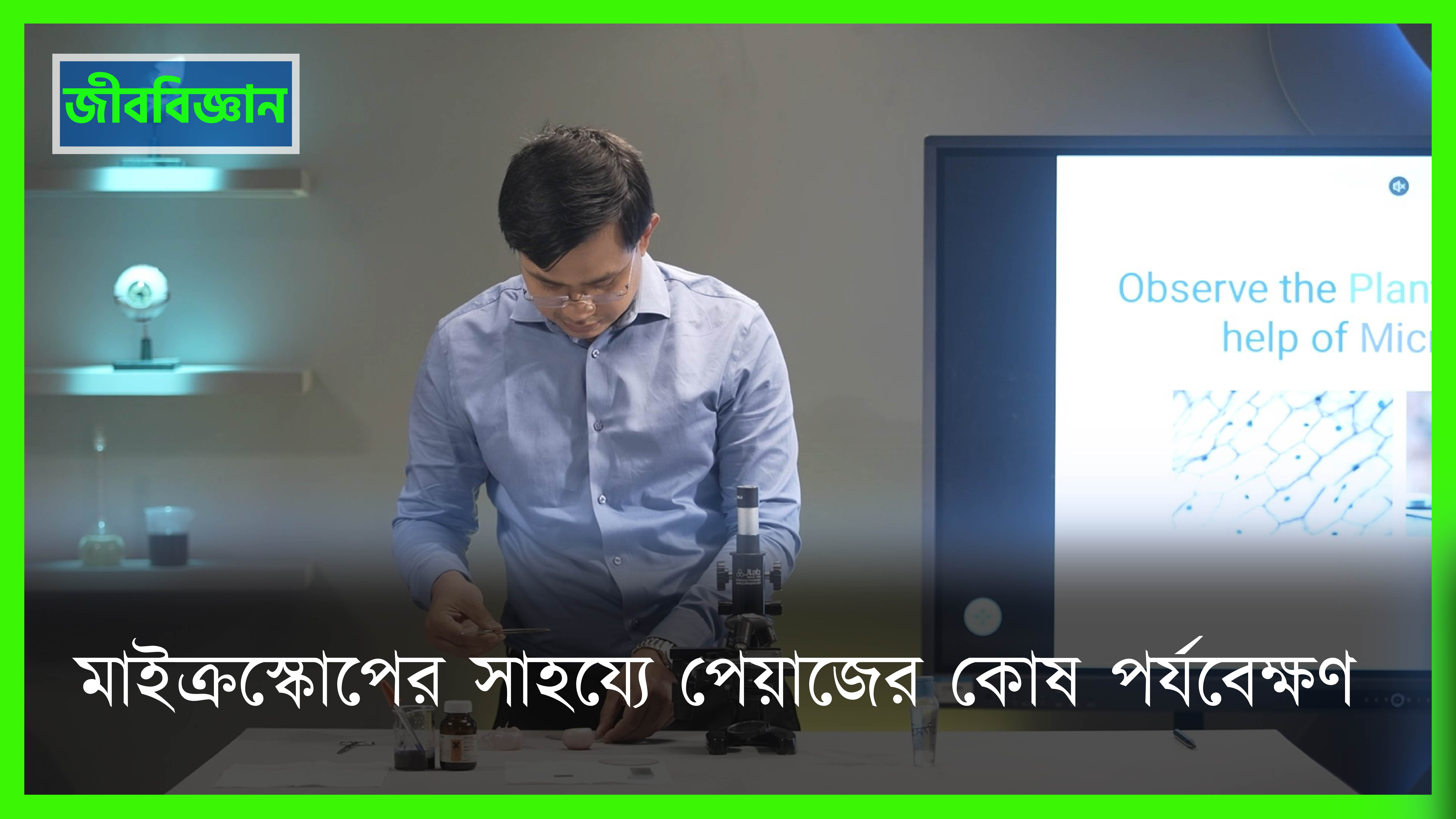 অণুবীক্ষণ যন্ত্রের সাহায্যে উদ্ভিদকোষ (পেঁয়াজ কোষ) পর্যবেক�..
